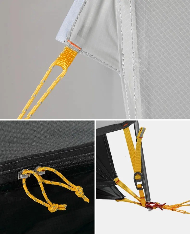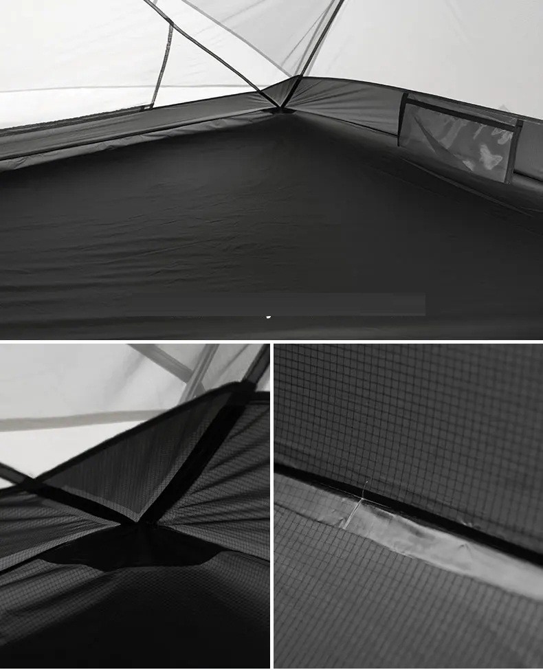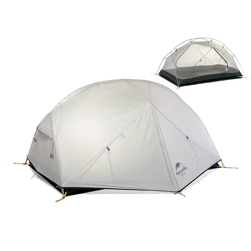 Ultralehký stan pro 2 osoby 210 x 255 x 100 cm šedý z odolného 20D nylonu Třísezónní turistický stan pro výpravy a celodenní cestování