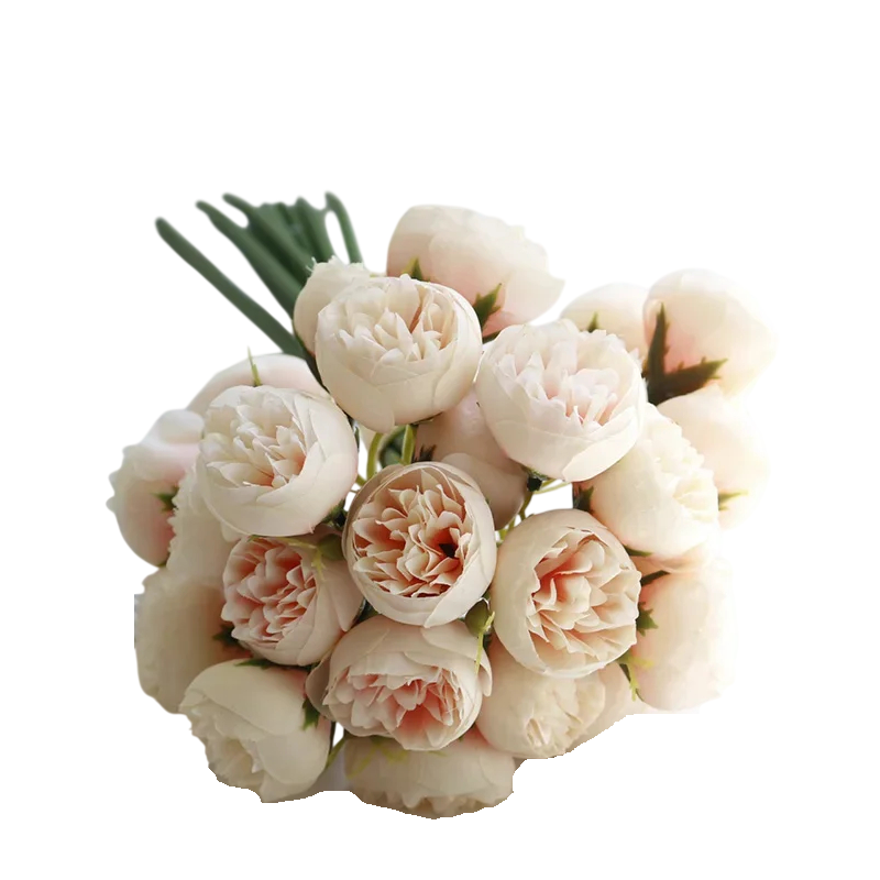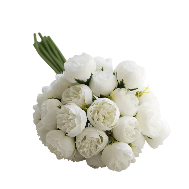 Dekorační pivoňky lze použít samostatně nebo je kombinovat s dalšími umělými květinami. Hodí se na svatby, oslavy, recepce i běžné interiérové dekorace. Díky trvalému provedení si zachovávají svůj vzhled bez zalévání a pravidelné údržby. Květy mají vrstvené okvětní lístky, které vytvářejí realistický efekt. Umělé květiny jsou praktickou variantou pro celoroční použití.