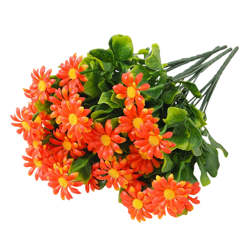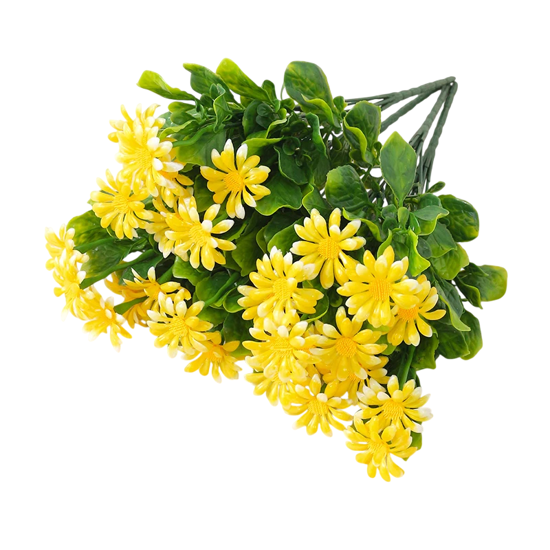 Sedmikrásky přinášejí svěží a upravený vzhled po celý rok. Umělé provedení nevyžaduje zalévání ani speciální podmínky, takže je vhodné i do tmavších místností. Díky univerzálnímu stylu je lze snadno kombinovat s dalšími dekoracemi, větvičkami nebo zelení. Svazek lze použít samostatně nebo rozdělit do více aranžmá podle potřeby.