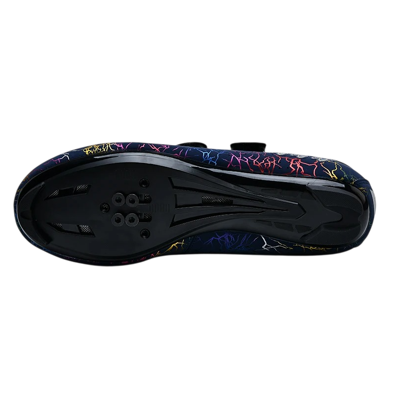 Materiálové složení zahrnuje nylon, PU kůži a EVA, které zajišťují pevnost a komfort při nošení. Podrážka je vybavena otvory pro uchycení kufrů na nášlapné pedály, což umožňuje efektivní propojení s kolem. Spodní část boty je navržena tak, aby poskytovala stabilní kontakt s pedálem a podporovala plynulý přenos síly při šlapání. Konstrukce odpovídá požadavkům na praktickou cyklistickou obuv.