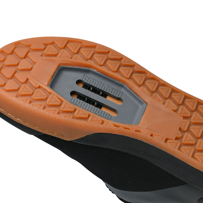 Materiálové složení zahrnuje nylon, EVA, bavlnu a pryž, které společně zajišťují vyváženou kombinaci odolnosti a komfortu. Podrážka je vybavena středovou částí s otvory pro uchycení kufrů, což umožňuje propojení s nášlapnými pedály. Vnější část podrážky je opatřena vzorkem, který zlepšuje přilnavost při chůzi. Konstrukce spodní části boty podporuje efektivní přenos síly při šlapání.