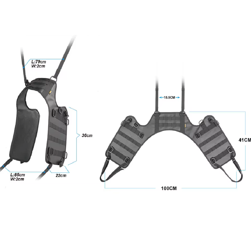 Součástí jsou nastavitelné popruhy pro upevnění. Horní popruh má délku přibližně 79 cm a šířku 2 cm, spodní popruhy dosahují délky přibližně 85 cm a šířky 2 cm. Tyto popruhy umožňují pevné a flexibilní uchycení k rámu motocyklu.