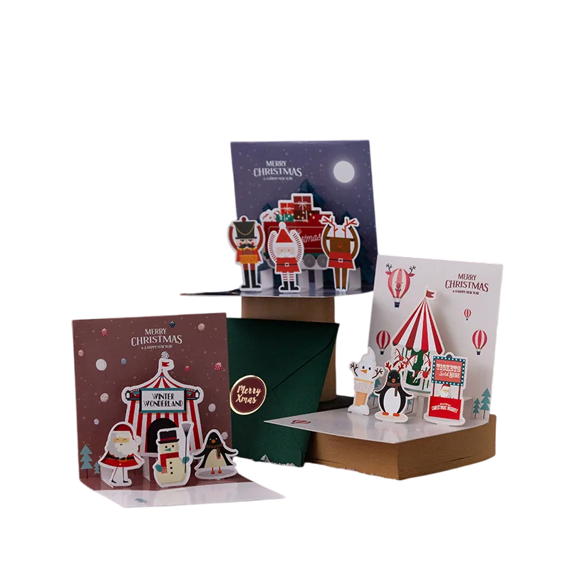 Vánoční a novoroční 3D přání z papíru Ručně vyráběné skládací sváteční přáníčko s vánočními motivy Elegantní dekorativní blahopřání pro všechny