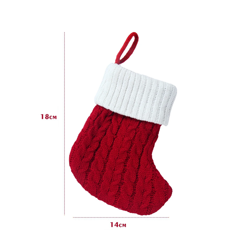 Vánoční červená ponožka 15 x 25,7 cm s bílým okrajem a provázkem na zavěšení Dekorační punčocha na dárky Ozdoba na krb nebo stromeček
