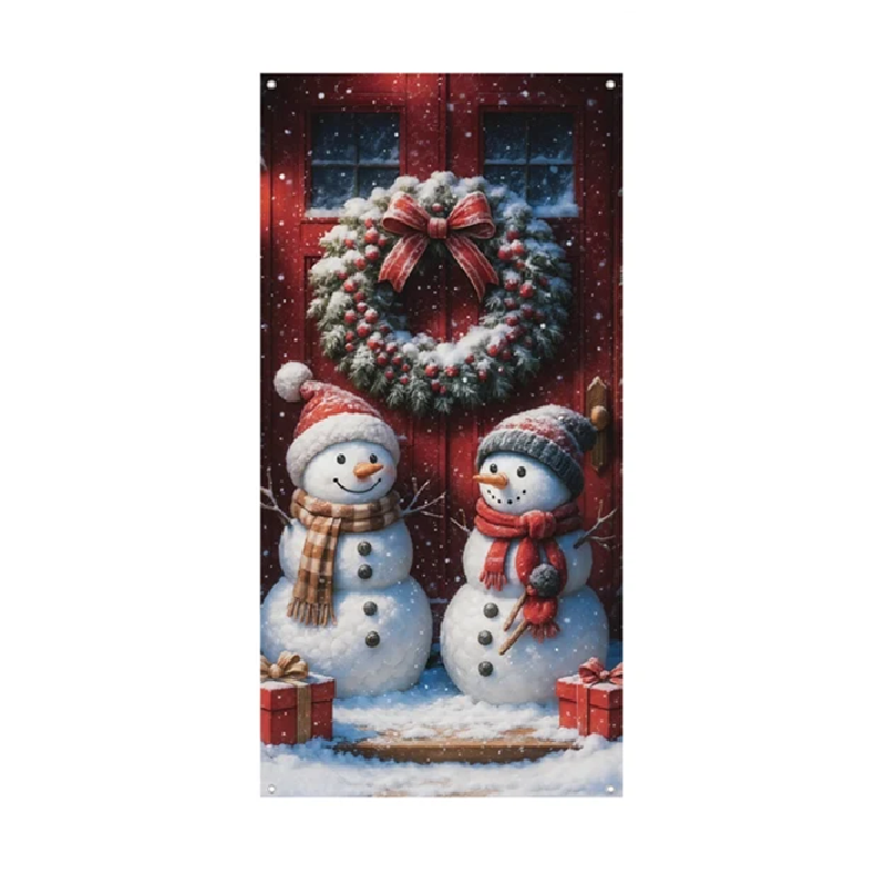 Vánoční svislý banner 180 x 90 cm Dva sněhuláci Dekorační závěsný polyesterový banner na stěnu nebo dveře Vánoční výzdoba interiéru