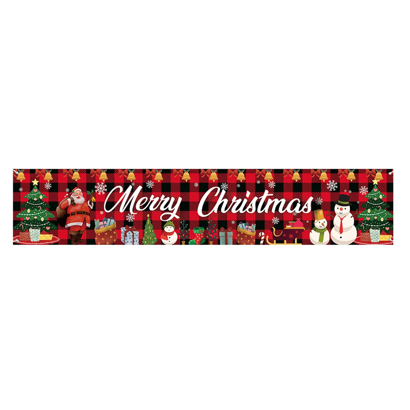 Vánoční venkovní banner 200 x 40 cm Černo-červený kostkovaný s nápisem Merry Christmas Odolná dekorace pro fasádu a zahradu