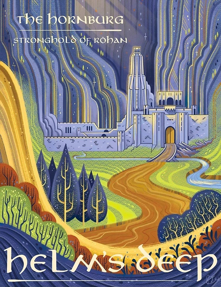 Plakát Helm's Deep 50 × 70 cm na plátně s motivem pevnosti a krajiny vytvoří výraznou fantasy dekoraci na zeď do interiéru. Celý popis