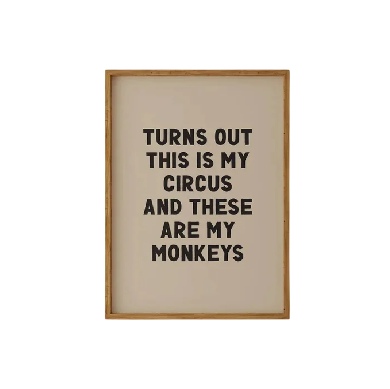 Úvodní strana Úvodní strana Dům a domácí potřeby Dekorace a bytové doplňky Rámečky a obrazy Velkoformátový plakát na zeď s citátem turns out this is my circus and these are my monkeys 50 x 70 cm tisk na plátno bez rámu
