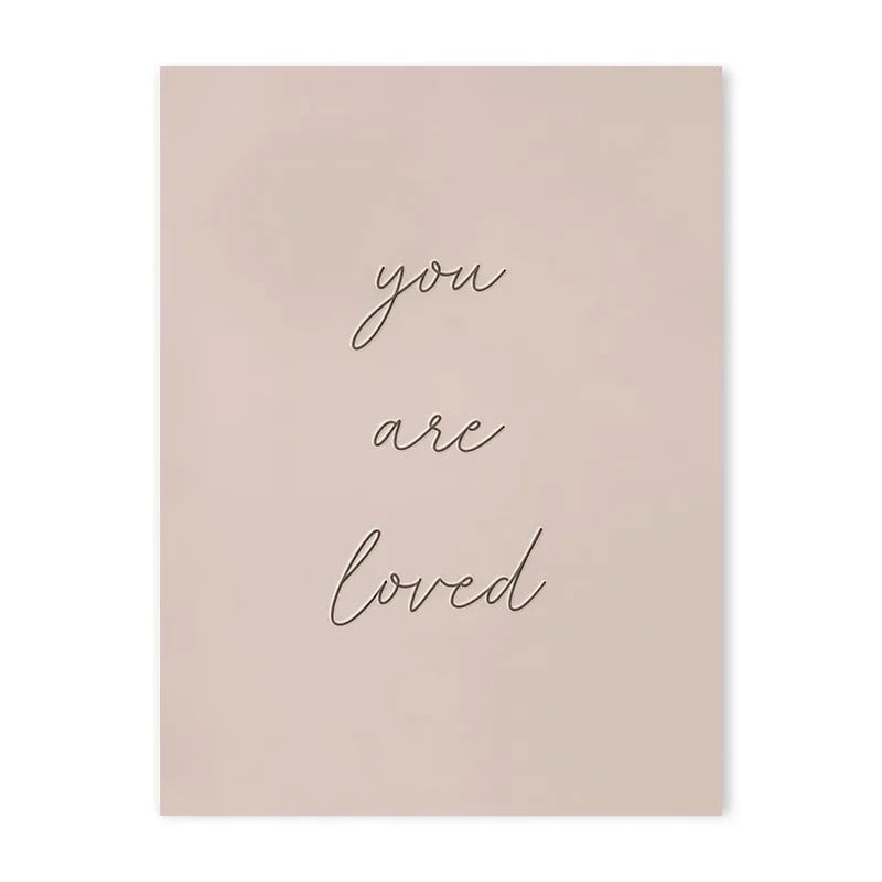 Velkoformátový plakát na zeď s nápisem "you are loved" 50 x 70 cm plátěný tisk růžové pozadí bez rámu dekorace do dětského pokoje