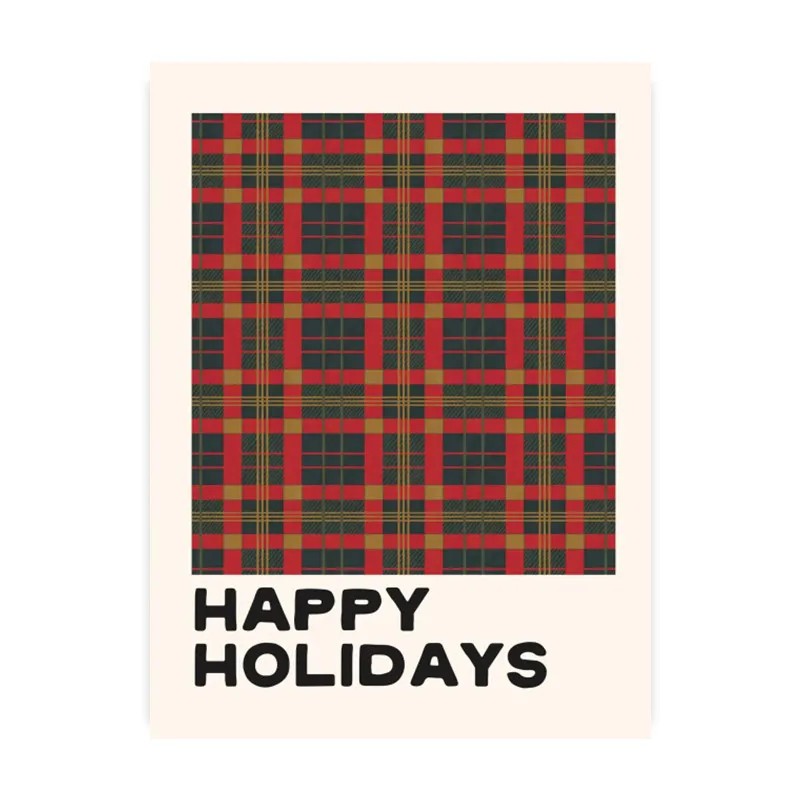 Plakát na zeď s motivem červeno-zeleného kárování představuje výrazný dekorativní prvek vhodný pro vánoční výzdobu interiéru. Vzor je tvořen pravidelnou mřížkou v kombinaci červené a zelené barvy, která je typická pro sváteční období. Motiv doplňuje nápis „Happy Holidays“, který podtrhuje celkový charakter dekorace. Díky většímu formátu 50 × 70 cm může plakát sloužit jako dominantní prvek na stěně. Tisk na plátno dodává povrchu jemnou strukturu a přirozený vzhled bez lesku.