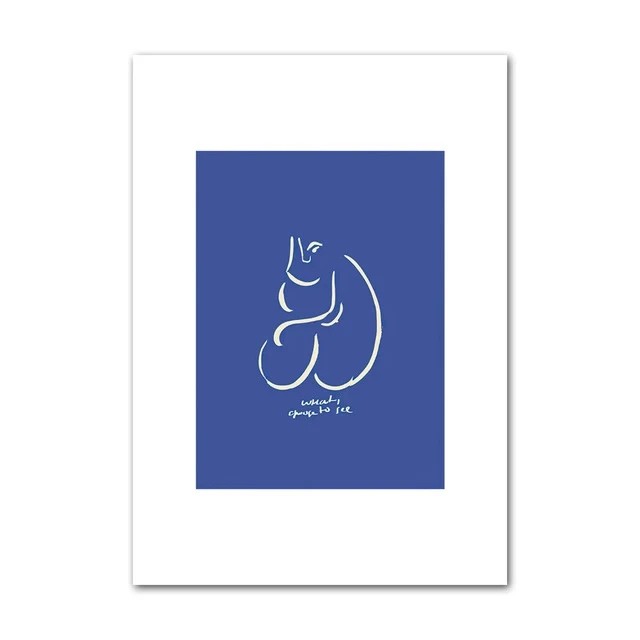 Barevné provedení v kombinaci modré a bílé vytváří kontrastní, ale zároveň harmonický celek. Minimalistické zpracování zdůrazňuje jednoduchost liniového motivu bez zbytečných detailů. Plakát je dodáván jako měkký plakát bez rámu, což umožňuje flexibilní přizpůsobení způsobu instalace.