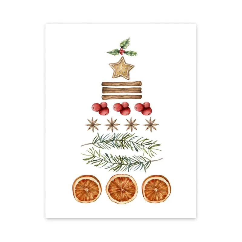 Velký vánoční plakát na zeď s motivem koření uspořádaného do tvaru stromku přináší do interiéru přírodní dekorativní prvek inspirovaný sváteční atmosférou. Jednotlivé ilustrace koření a rostlin jsou uspořádány tak, aby vytvářely stylizovaný vánoční stromek s přehlednou kompozicí. Díky rozměru 50 × 70 cm se plakát stává dominantním prvkem vhodným pro větší plochy stěny.