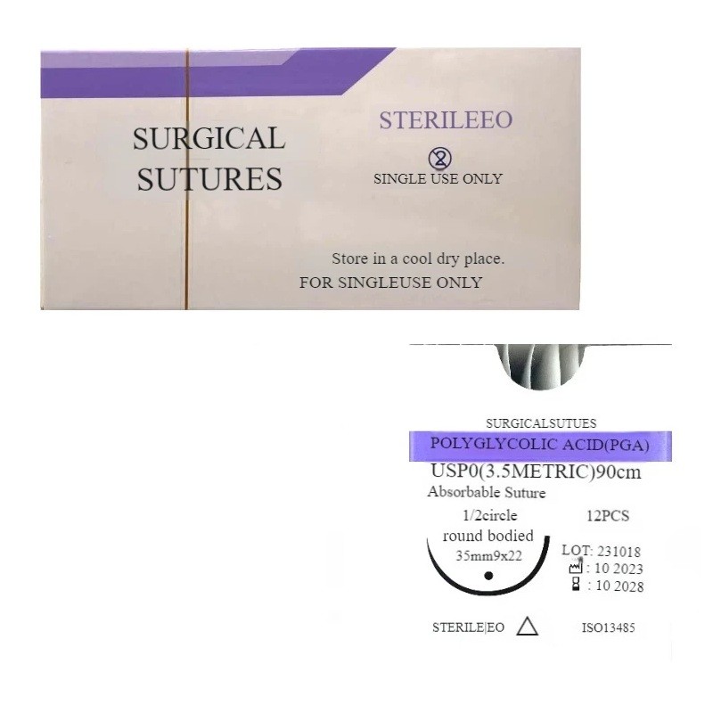 Veterinární vstřebatelné stehy PGA USP-0 90 cm 1/2 kruhová kulatá jehla 35 mm sterilní jednorázové chirurgické šicí vlákno