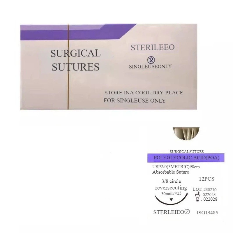 Veterinární vstřebatelné stehy PGA USP 2-0 90 cm 3/8 kruhová řezná jehla 30 mm sterilní jednorázové chirurgické šití