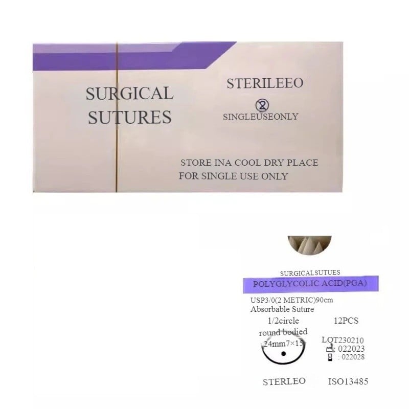 Veterinární vstřebatelné stehy PGA USP 3-0 90 cm 1/2 kruhová kulatá jehla 24 mm sterilní jednorázové chirurgické šití