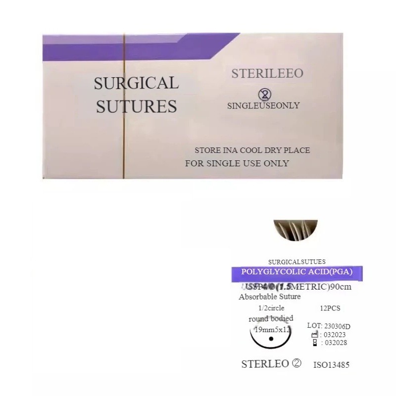 Veterinární vstřebatelné stehy PGA USP 4-0 90 cm 1/2 kruhová kulatá jehla 19 mm sterilní jednorázové chirurgické šití