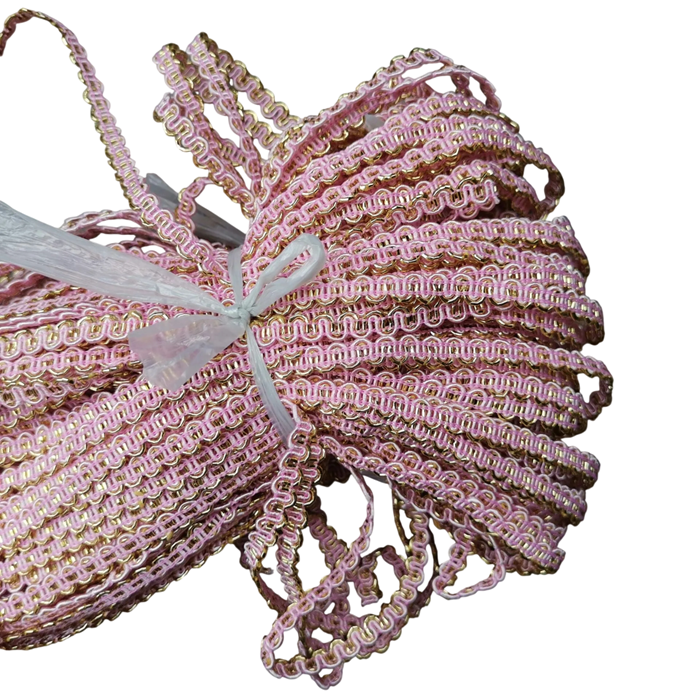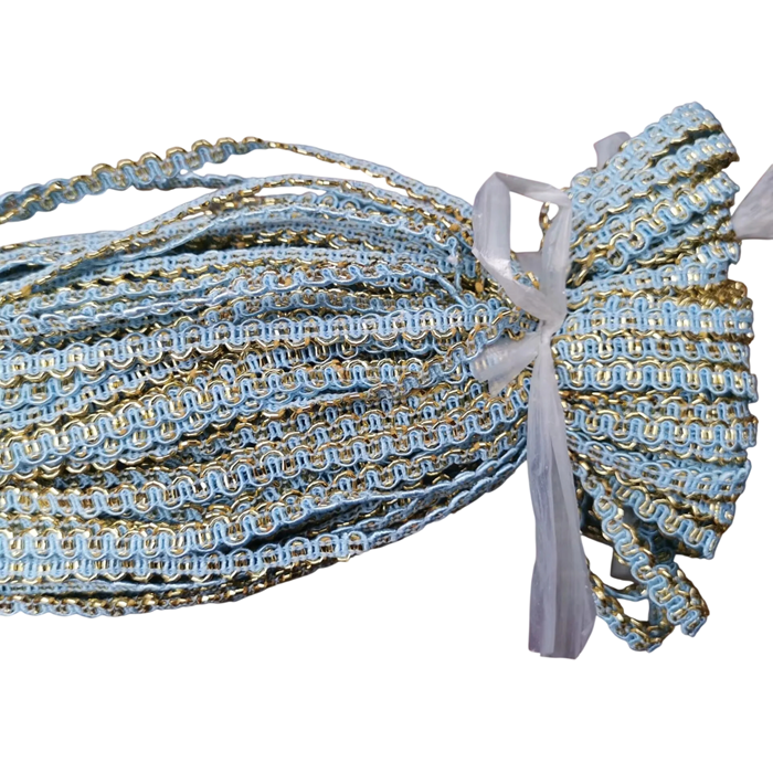 Vlnitá dekorativní stuha je praktický textilní doplněk vhodný pro široké využití při šití, zdobení oděvů a kreativní tvorbě. Díky svému jemnému vlnitému designu vytváří elegantní dekorativní efekt, který může oživit různé textilní projekty i dekorace. Úzké provedení umožňuje detailní zdobení šatů, doplňků, bytových dekorací nebo ručně vyráběných výrobků. Stuha je vyrobena z polyesteru, který je lehký, odolný a dobře drží tvar při manipulaci. Díky své flexibilitě se snadno přišívá, lepí nebo používá jako ozdobný prvek při kreativní práci.