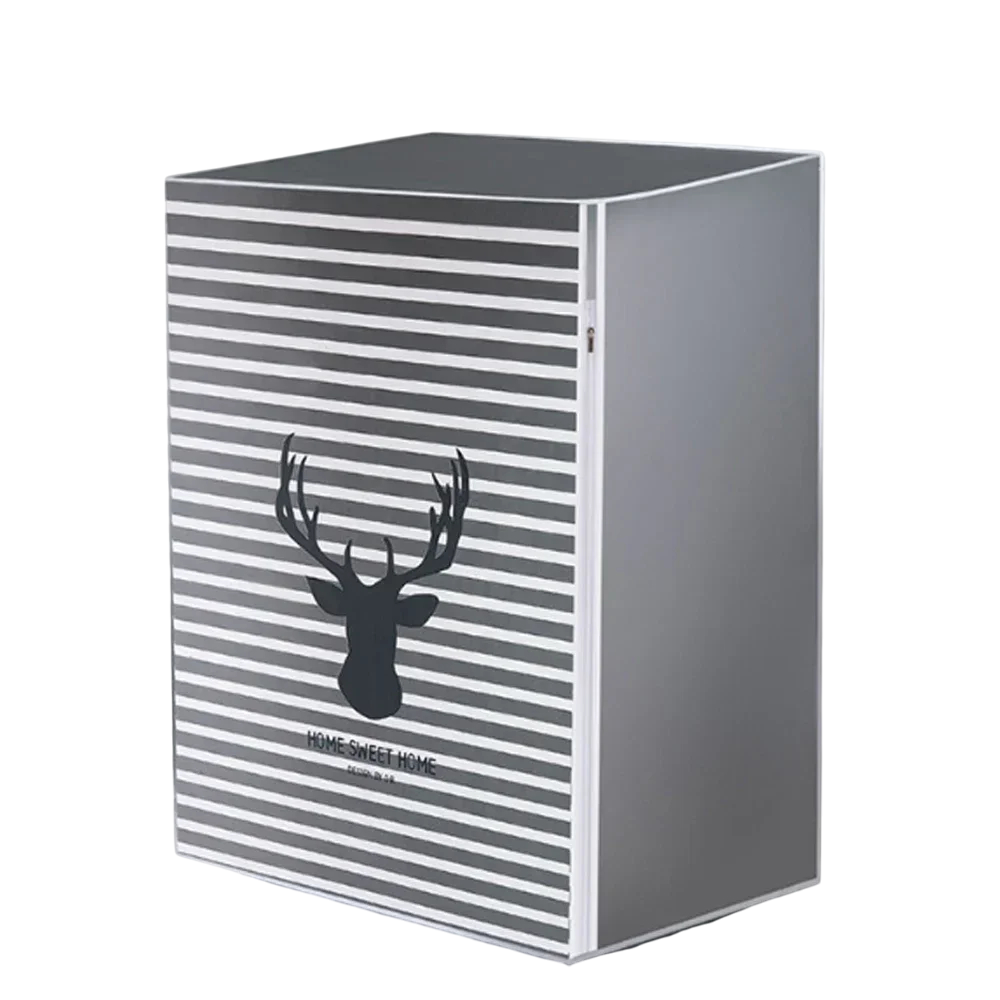 Voděodolný ochranný potah na vrchem plněnou pračku 86 x 62 x 55 cm Motiv jelen Šedé pruhy Zip nahoře i vpředu Ochrana proti prachu a dešti