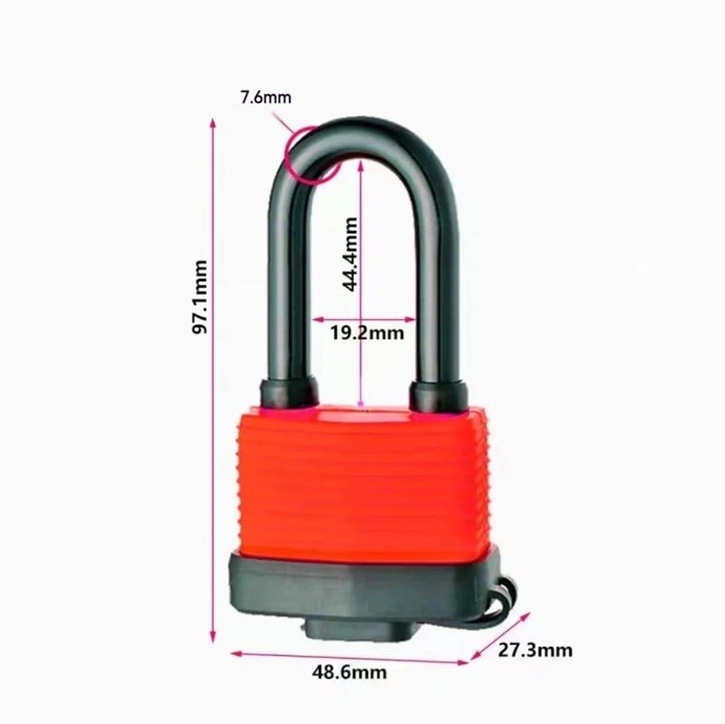 Voděodolný visací zámek je praktickým řešením pro zabezpečení různých předmětů i prostor, kde hraje roli odolnost vůči vlhkosti. Díky prodlouženému oblouku se snadno přizpůsobí širším konstrukcím nebo místům, kam běžné zámky nedosáhnou. Konstrukce působí kompaktně a je vhodná pro každodenní používání. Rozměry zámku umožňují univerzální využití jak v interiéru, tak venku.