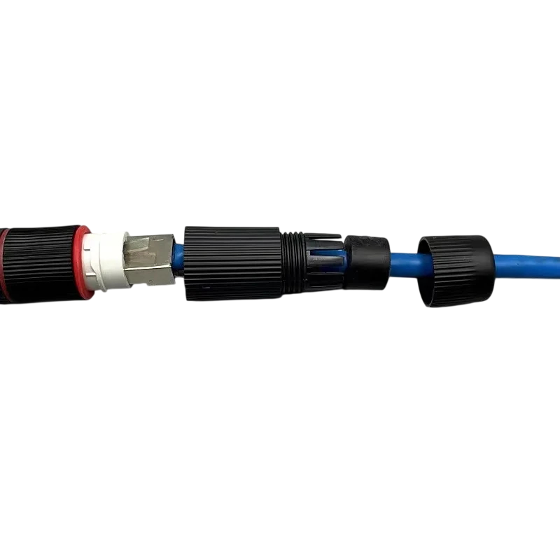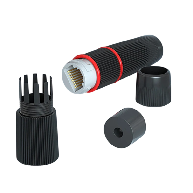 Konektor je kompatibilní s RJ45 ethernetovými kabely a podporuje použití v prodlužovacích aplikacích. Vnitřní deska plošných spojů je vyrobena z poniklované čisté mědi, což zajišťuje spolehlivý kontakt a dobré elektrické vlastnosti. Díky konstrukci s vysokou elasticitou kontaktů je spoj pevný a odolný vůči opakovanému použití. Vodotěsné provedení chrání spoj před nepříznivými vlivy prostředí.