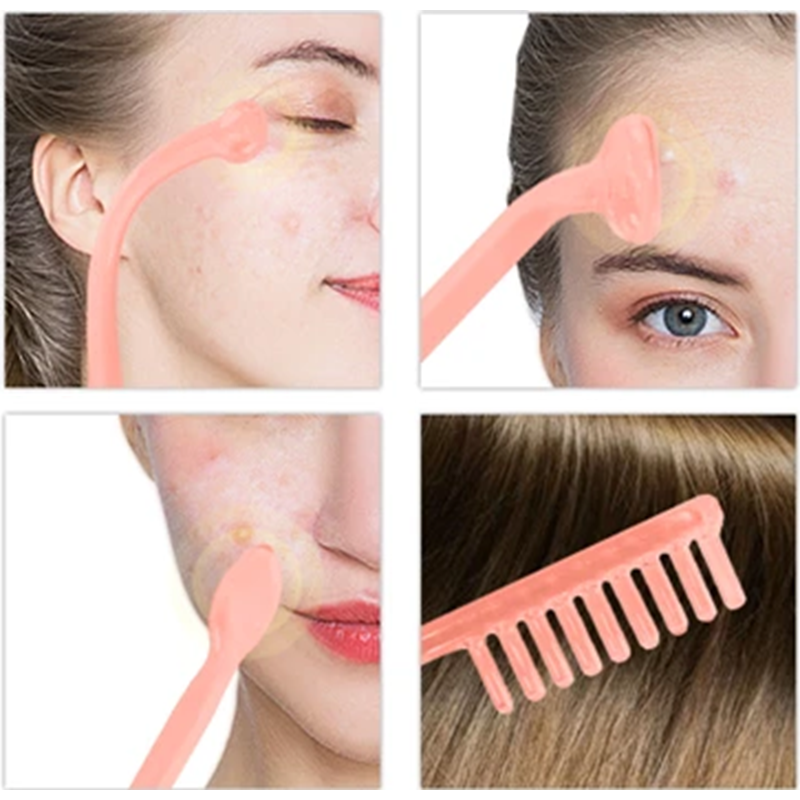 Vysokofrekvenční přístroj na ošetření obličeje je moderní kosmetické zařízení určené k regeneraci, zlepšení pružnosti a omlazení pokožky. Využívá bezpečné vysokofrekvenční elektrické impulzy, které podporují krevní oběh, stimulují tvorbu kolagenu a napomáhají rychlejší obnově buněk. Díky čtyřem vyměnitelným skleněným elektrodám lze přístroj použít pro různé části obličeje a typy pleti. Je vhodný jak pro domácí péči, tak pro profesionální kosmetické salony.