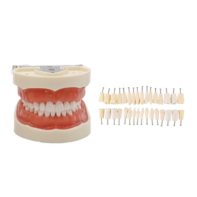Tento výukový typodont chrupu je navržen jako komplexní pomůcka pro odbornou výuku a praktický nácvik stomatologických dovedností. Model obsahuje kompletní sadu 32 anatomicky tvarovaných zubů, které realisticky napodobují lidský chrup. Díky měkké snímatelné dásňové části umožňuje simulaci skutečných zákroků a správnou manipulaci při výuce. Je ideální pro studenty stomatologie, zubní techniky i odborné školící programy. Součástí balení je také 32 náhradních zubů, které zajišťují dlouhou životnost modelu a opakované použití.