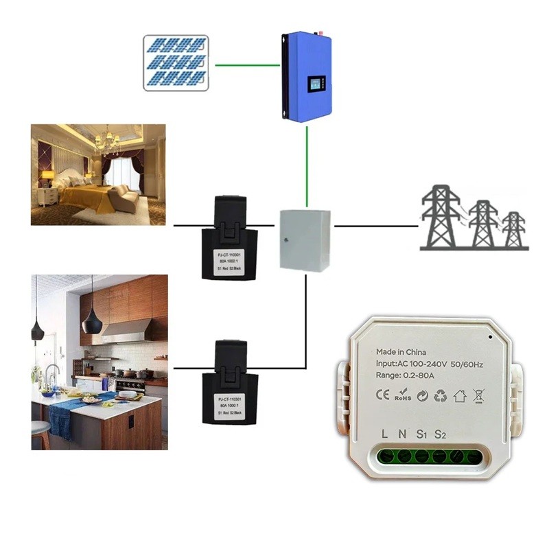 - Obsah balení: 1× WiFi měřič energie Tuya, 2× CT proudový transformátor