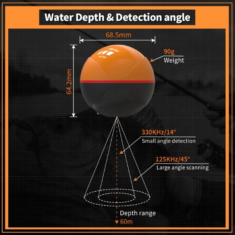 Zařízení nabízí detekční rozsah od 0,8 do 60 metrů a bezdrátový dosah až 40 metrů. Díky dvěma úhlům vyzařování 45° a 14° umožňuje sledovat širší i přesnější oblast podle potřeby. Napájení zajišťuje vestavěná polymerová baterie s kapacitou 500 mAh, která je dobíjena přes DC5V. Sonar je možné používat v teplotách od -10 do 50 °C, což rozšiřuje jeho využití během sezóny.