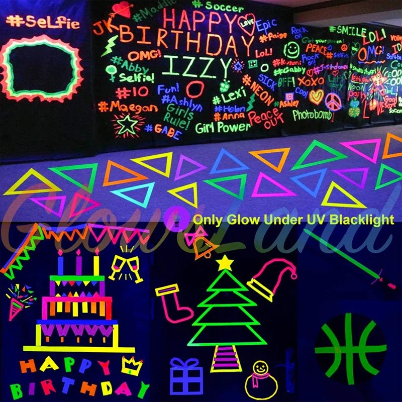 Tato UV zářivá lepící páska je ideální pro různé kreativní projekty, dekorace a označení. Díky neonovým barvám a fluorescenčním vlastnostem bude vaše práce osvěžena živými barvami, které pod UV, černým a fialovým světlem skutečně vyniknou. Páska je vyrobena z kvalitní bavlny a je samolepicí, což umožňuje snadné použití na různé povrchy. S délkou 5 metrů a šířkou 13 mm je perfektní pro detailní aplikace, jako je značení cest, dekorační práce nebo vytváření efektů na večírcích.