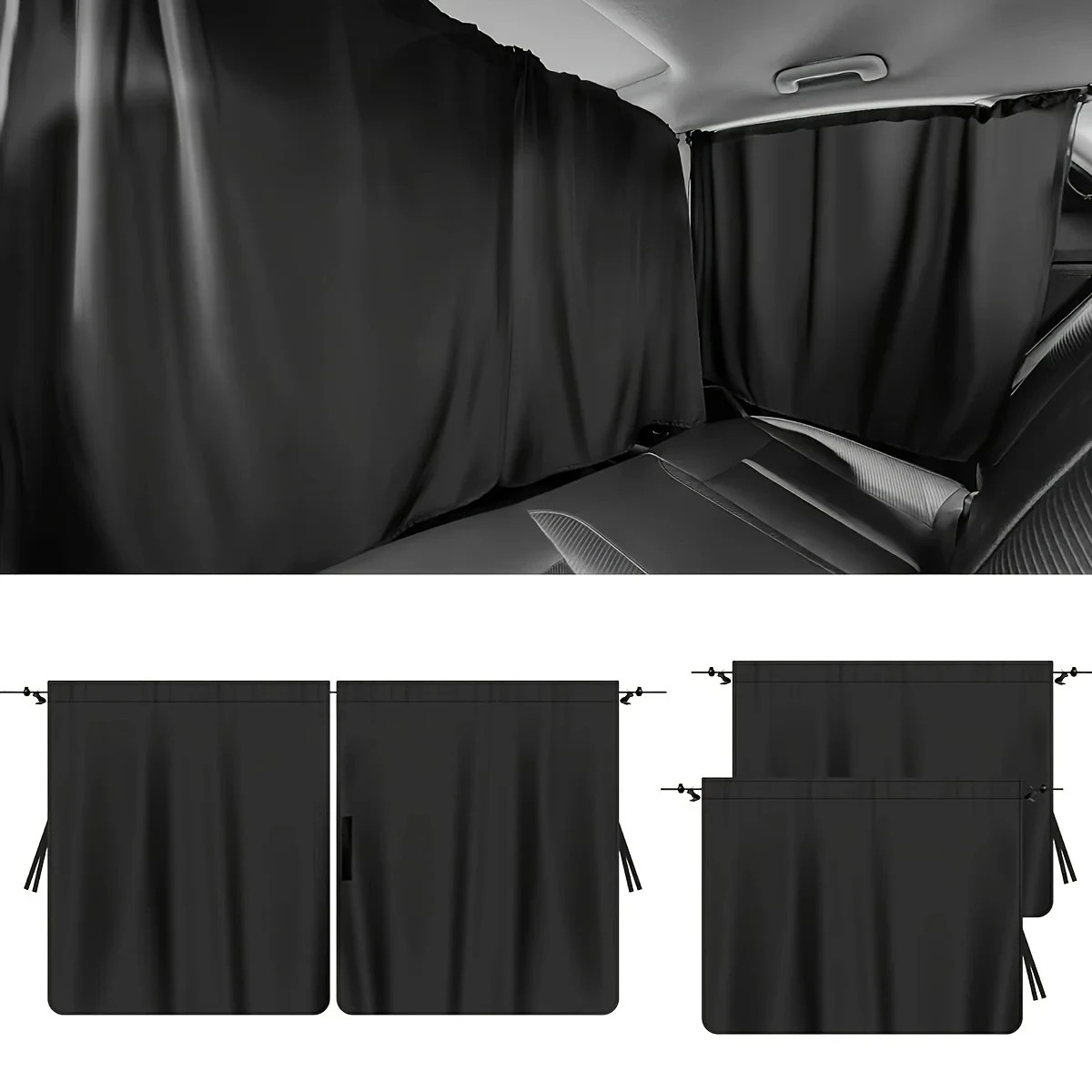 Sada čtyř zatemňovacích závěsů do auta přináší jednoduchý způsob, jak zajistit maximální soukromí uvnitř vozu a zároveň vytvořit příjemné, zatemněné prostředí během cestování nebo parkování. Závěsy jsou vyrobené z neprůhledné látky, která účinně blokuje světlo a chrání interiér před nežádoucími pohledy zvenčí. Díky univerzálnímu systému uchycení se hodí do většiny automobilů, a to jak osobních, tak i rodinných vozů či dodávek. Instalace je velmi snadná – vše probíhá v několika jednoduchých krocích a bez nutnosti vrtání. Závěsy lze také jednoduše shrnout a převázat vestavěnými stuhami, aby nebránily výhledu, což z nich dělá ideální řešení pro všestranné použití.