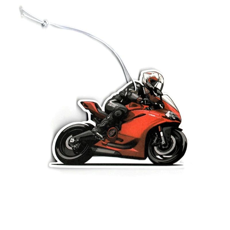 Závěsný osvěžovač vzduchu do auta s motivem motorky představuje zajímavý doplněk interiéru vozidla. Díky svému designu ve tvaru sportovní motorky působí výrazně a zároveň plní praktickou funkci. Umístění na zpětné zrcátko umožňuje snadné zavěšení a využití bez složité instalace. Design ve tvaru motorky zaujme na první pohled a doplní vzhled interiéru auta.