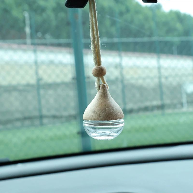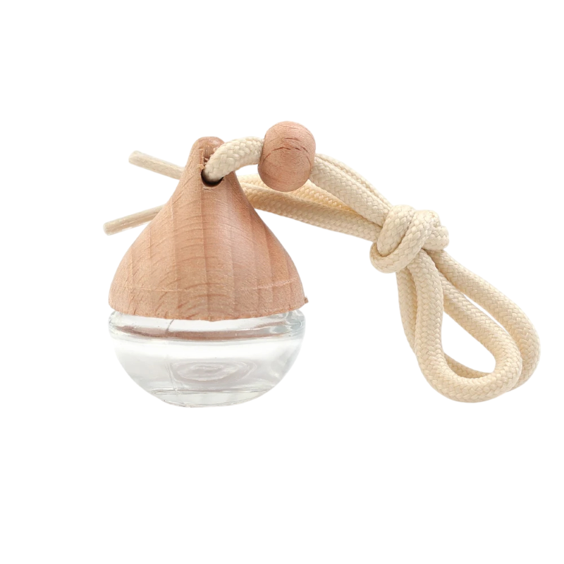 Závěsný osvěžovač vzduchu do auta v podobě kulaté parfémové lahve slouží jako praktický doplněk pro aromaterapii během jízdy. Díky kompaktním rozměrům se snadno zavěsí do interiéru vozu, aniž by překážel. Konstrukce kombinuje skleněnou nádobku a dřevěný kryt, který zároveň plní funkci uzávěru.