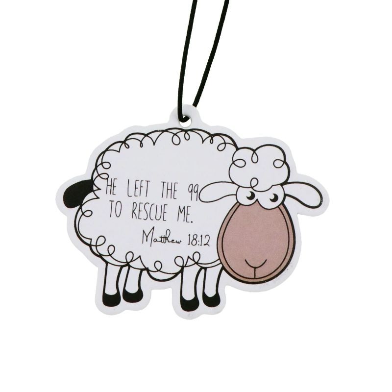 Závěsný osvěžovač vzduchu do auta v podobě stylizované ovečky je praktickým doplňkem pro každodenní použití. Tento model zaujme především svým jemným designem a textem „HE LEFT THE 99 TO RESCUE ME. Matthew 18:12“, který je umístěn přímo na těle ilustrace. Díky tomu se jedná nejen o funkční vůni do auta, ale i o dekorativní prvek interiéru.