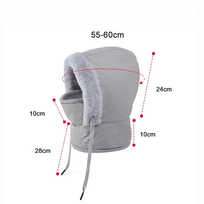 Zimní kukla s maskou je navržena pro maximální ochranu během chladných a větrných dnů. Díky univerzálnímu obvodu hlavy 55–60 cm se pohodlně přizpůsobí většině uživatelů a dobře drží při nošení. Integrovaná maska pomáhá chránit obličej před mrazem a studeným větrem, což oceníte při pobytu venku. Kukla má kompaktní rozměry 10 x 10 x 24 cm, díky kterým se snadno kombinuje s další zimní výbavou. Je vyrobena z polyesteru, který je lehký a příjemný při kontaktu s pokožkou.