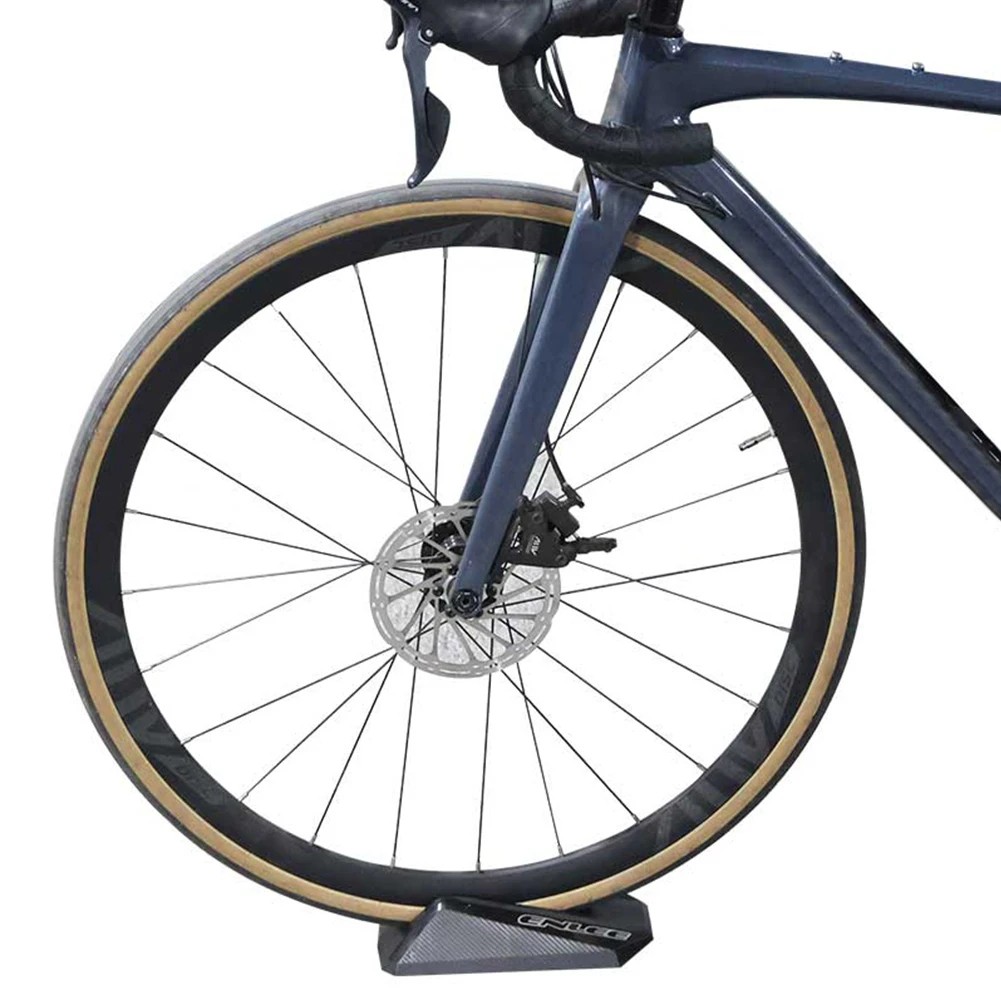 Blok je vyroben z ABS materiálu, který zajišťuje dostatečnou pevnost a odolnost při běžném používání. Povrch je tvarován tak, aby pevně držel přední kolo na místě. Díky kompaktním rozměrům lze blok snadno přenášet i skladovat. Nízká hmotnost a jednoduchý design umožňují jeho využití doma i na cestách.